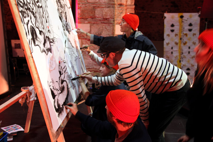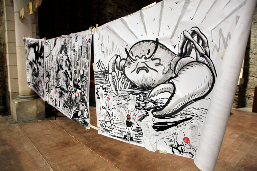 À bord de son rafiot, le Capitaine Toxic (incarné par l’auteur Tangui Jossic) embarque quatre artistes, Adèle Verlinden, Guillaume Carreau, Jordan Heraud et Enora Loaëc– marins d’eau douce devenu·es explorateur·ices des abysses – accompagné·es d’un équipage de dessinateur·ices. Ensemble, Iels voguent pour une odyssée graphique, pleine de périples, de dangers, et de trouvailles inattendues.