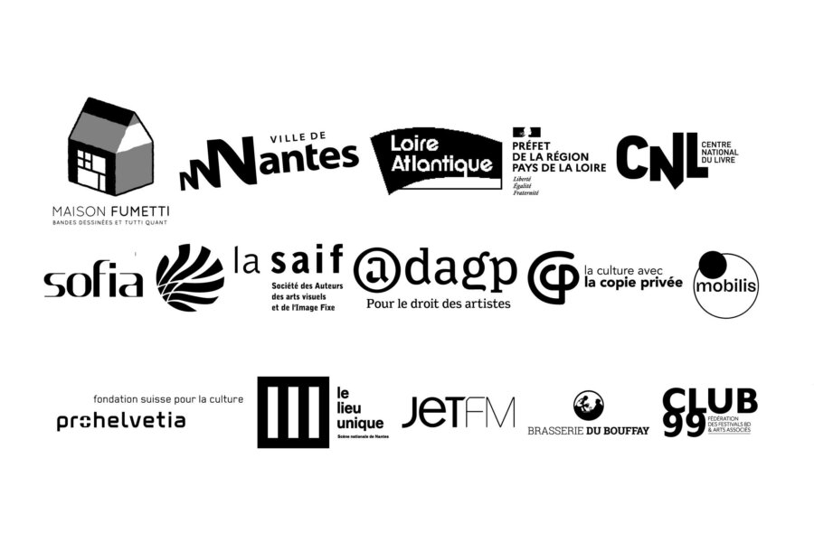 Le festival bénéficie de financements de la DRAC des Pays de la Loire, du Centre National du Livre, de la Sofia, de l’ADAGP, et de la SAIF, et de ProHelvetia.